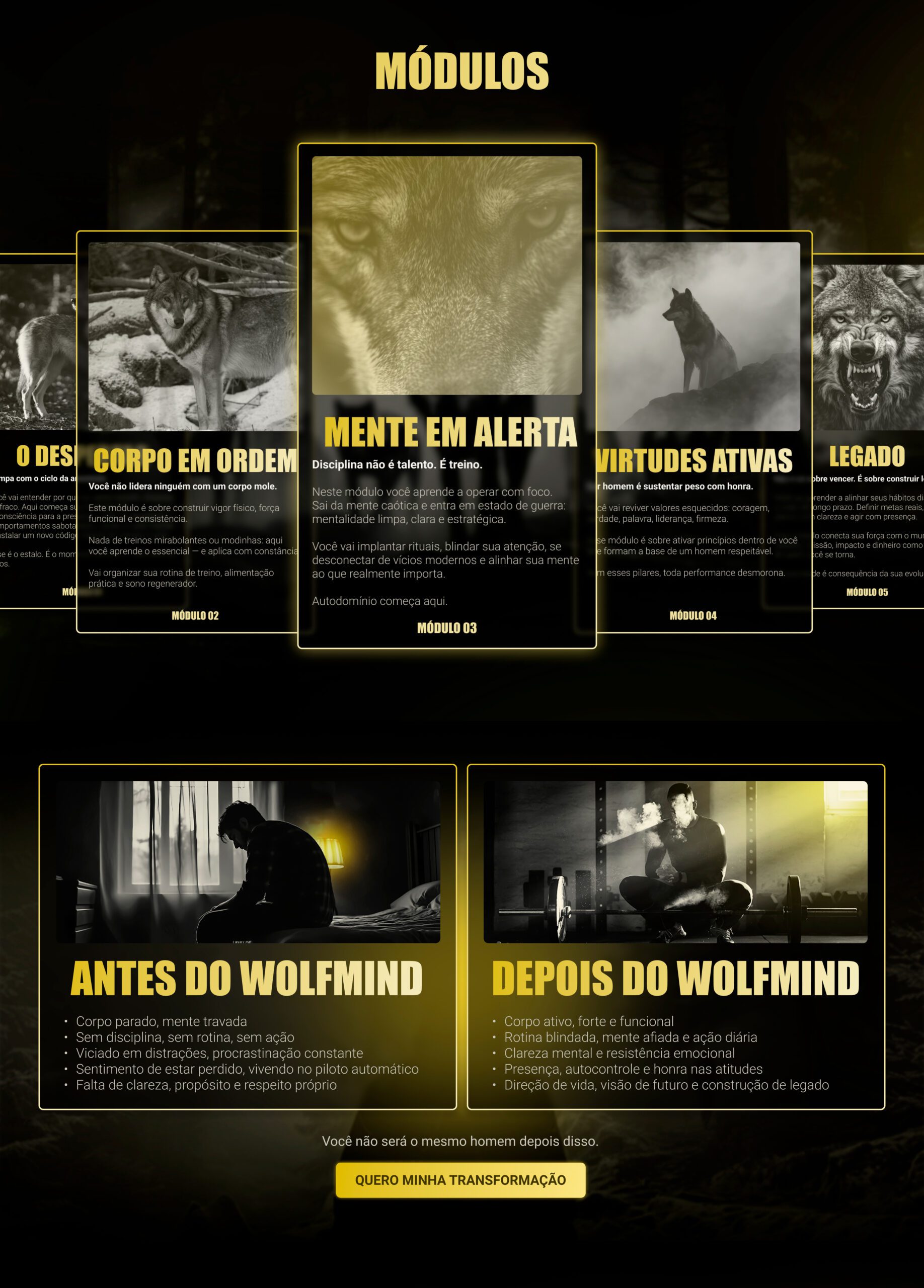 Landing Page de um curso para homens que querem desenvolver corpo e mente